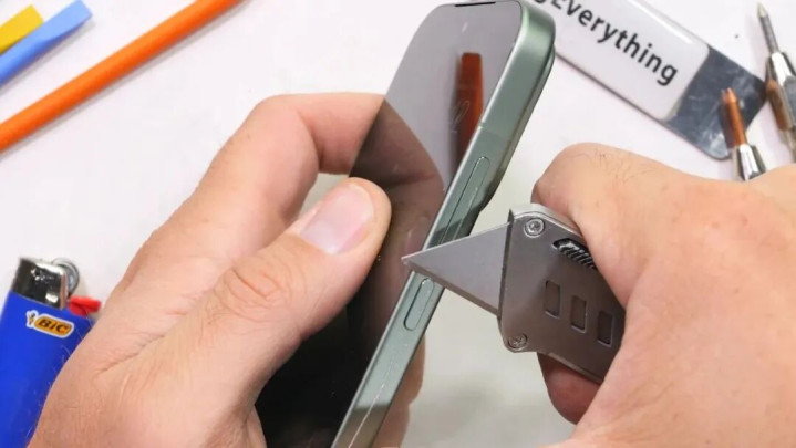 与此同时,后盖采用磨砂玻璃纤维材质,评测时博主还开玩笑地用小刀在后盖刻了一个“苹果Logo”——结果图案挺深,说明虽然材质质感好,但在极端刮刻状态下也没啥遮羞。